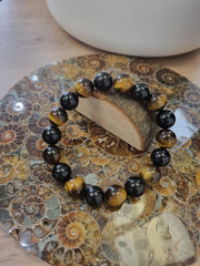 Bracelet oeil de tigre et obsidienne - Bracelet oeil de tigre et obsidienne